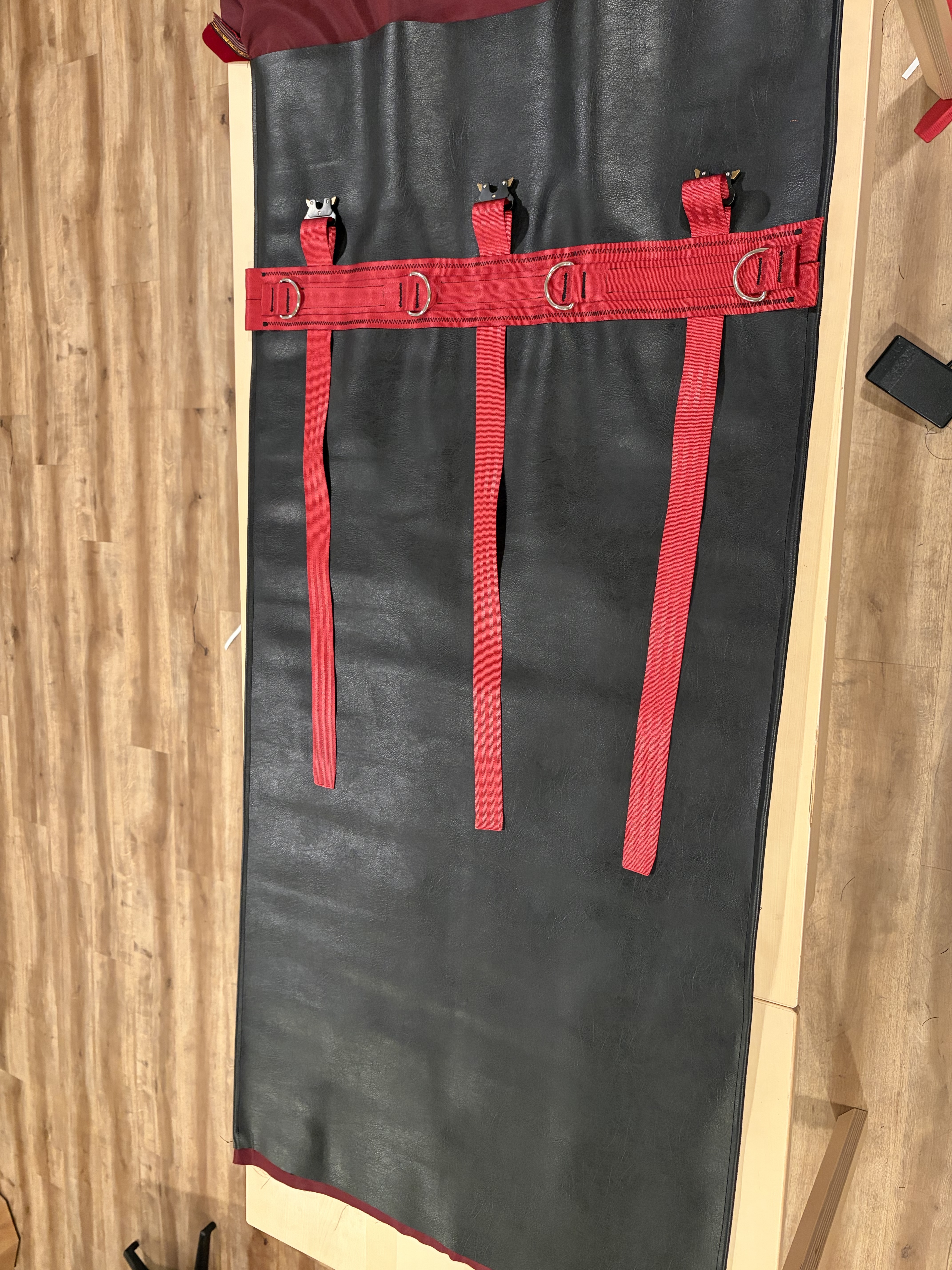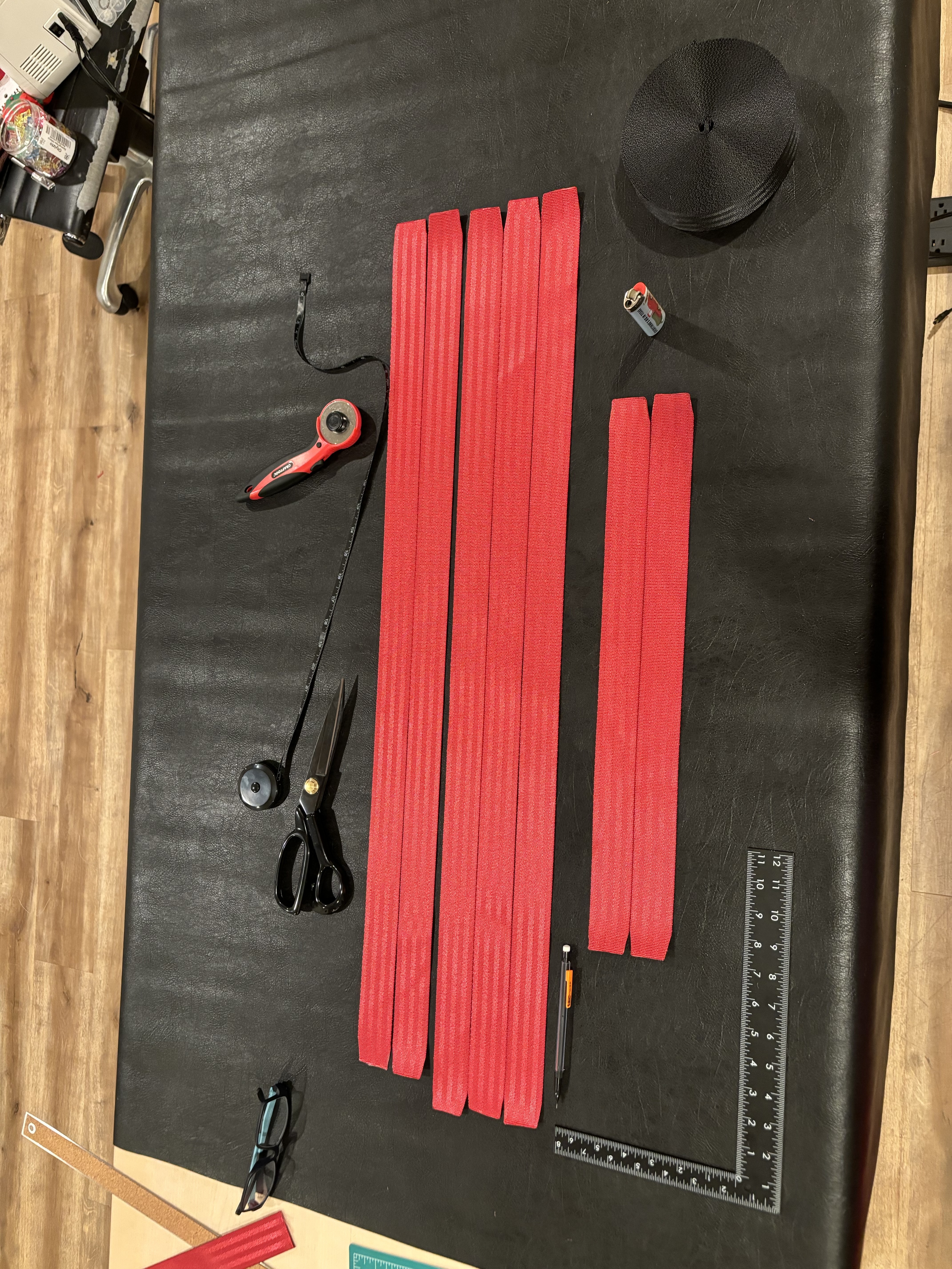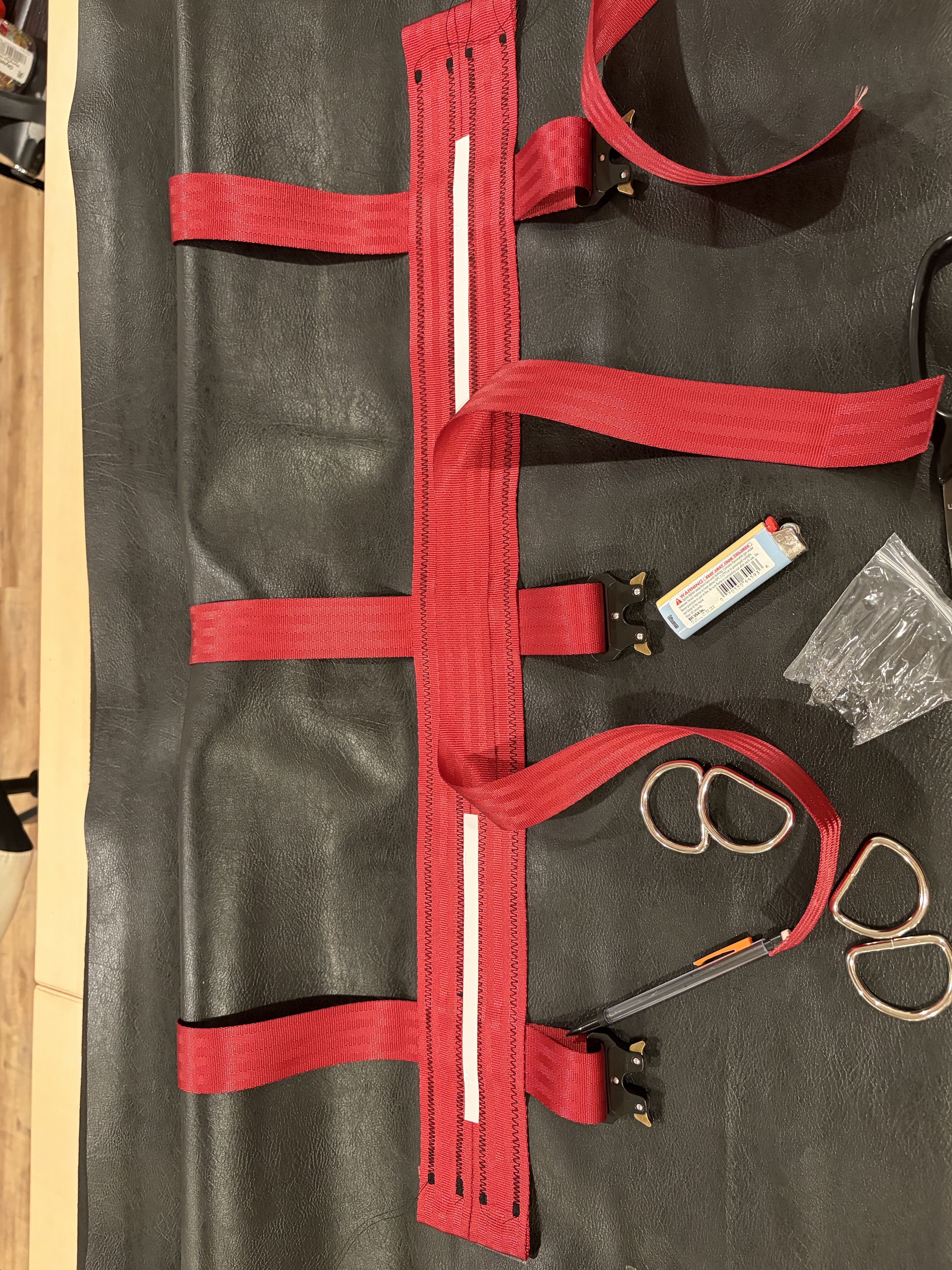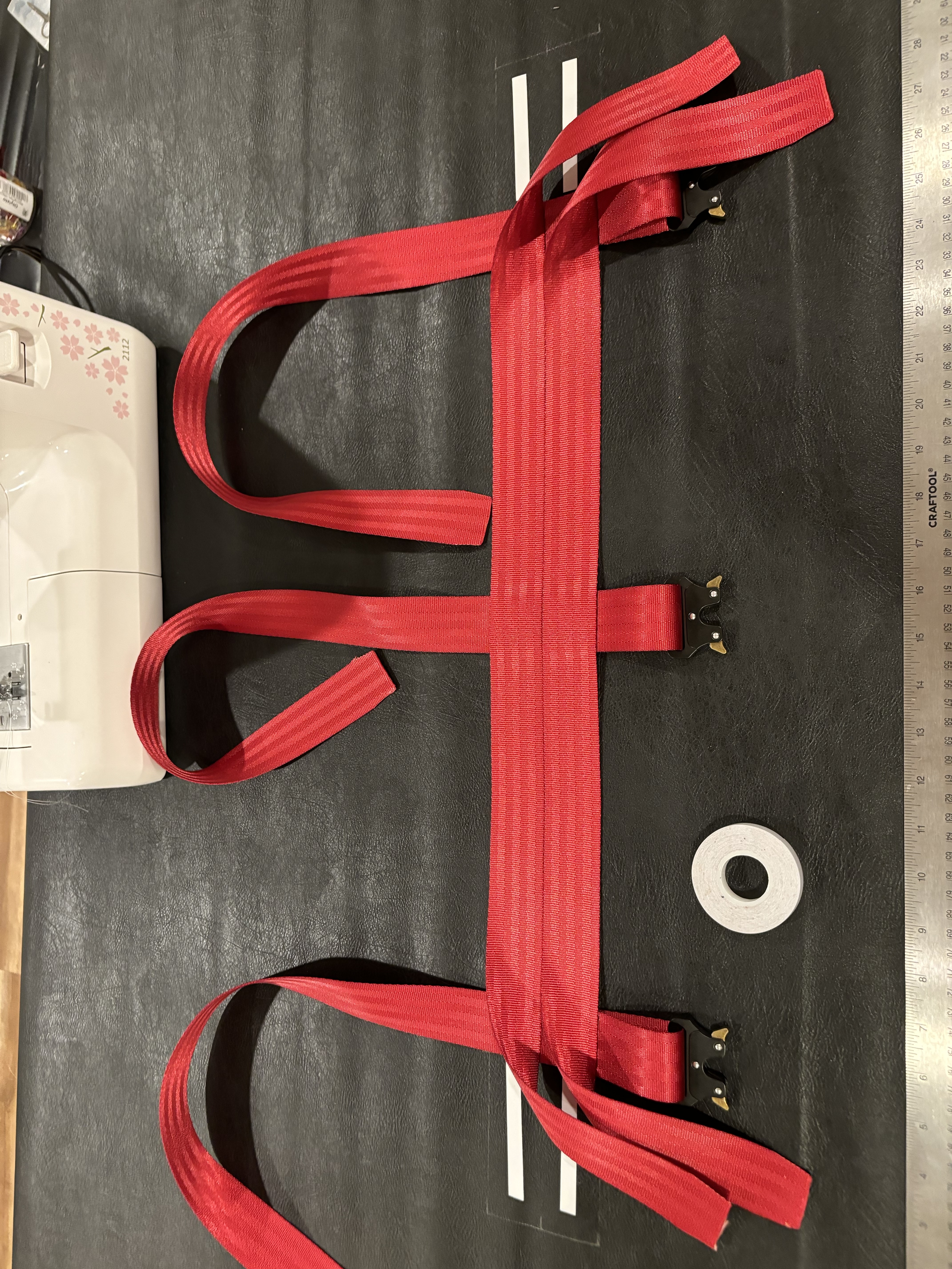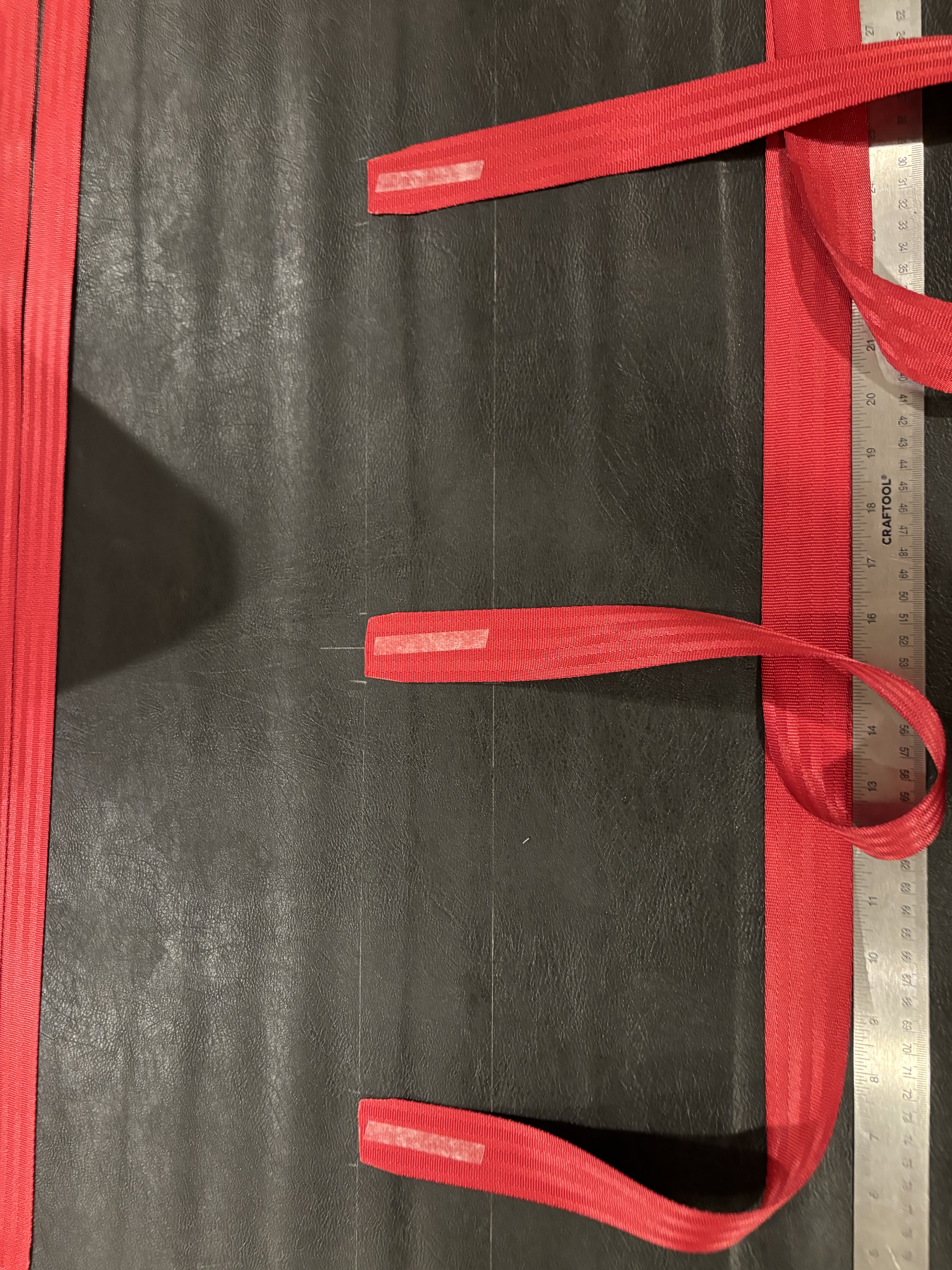 Cut three 35’’ straps of webbing, those will be the ones closing the bag.