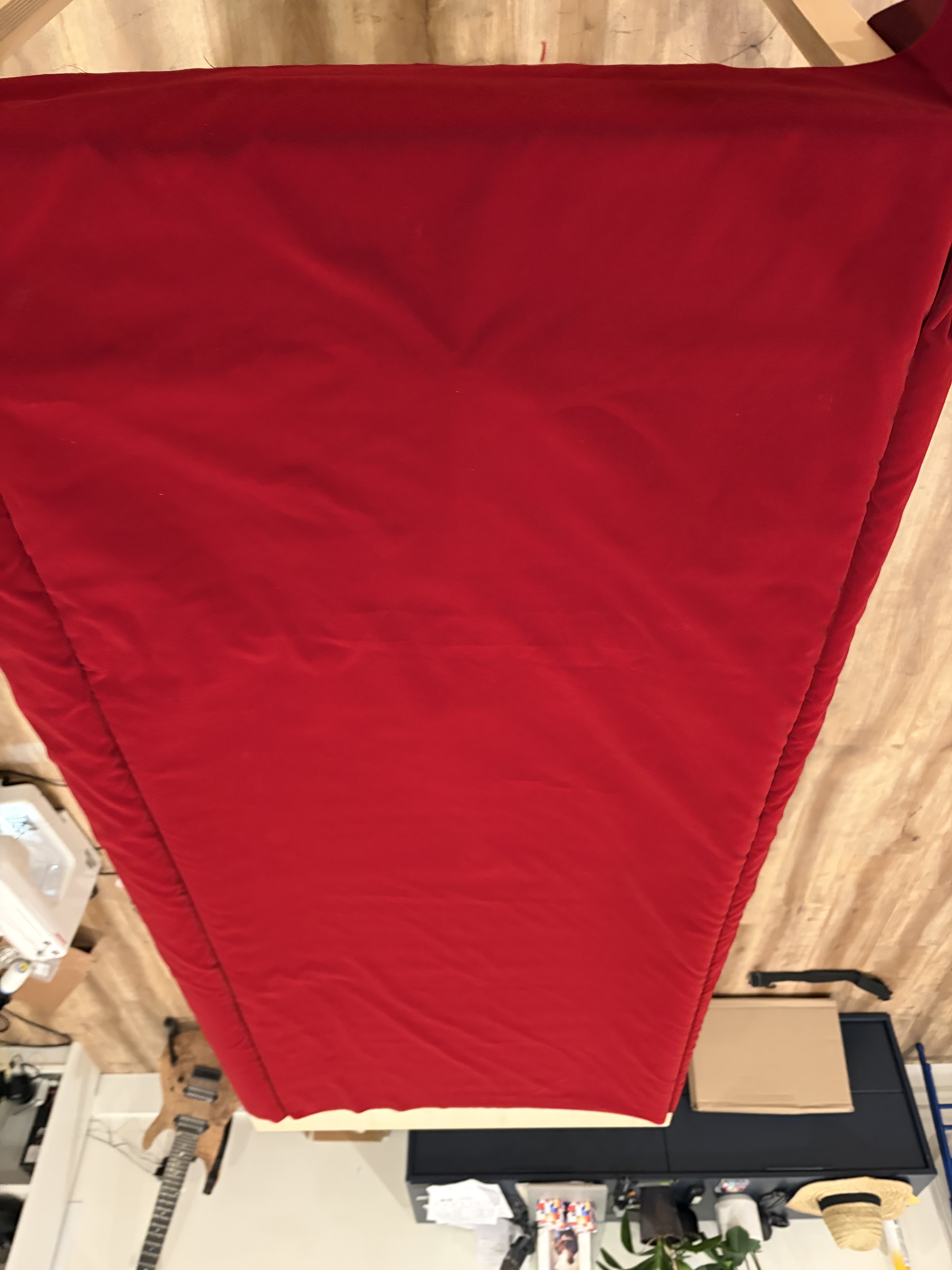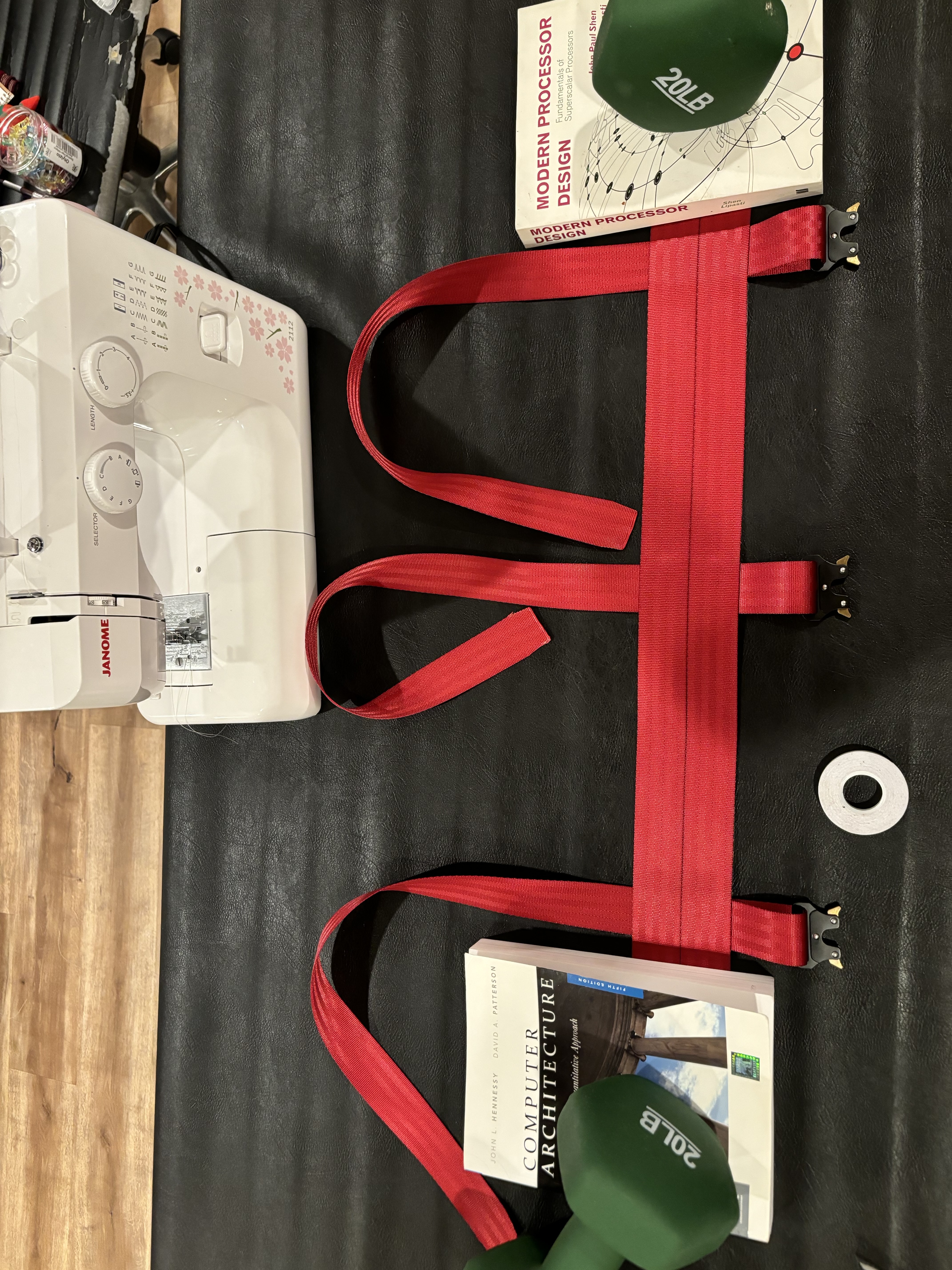 It is possible to sew them as is but in my case I finished this step before going to sleep so I took advantage of the night and used the heaviest things I could find (i.e two books on computer architecture and some training weights) to let the straps get used to the fold during the night.
