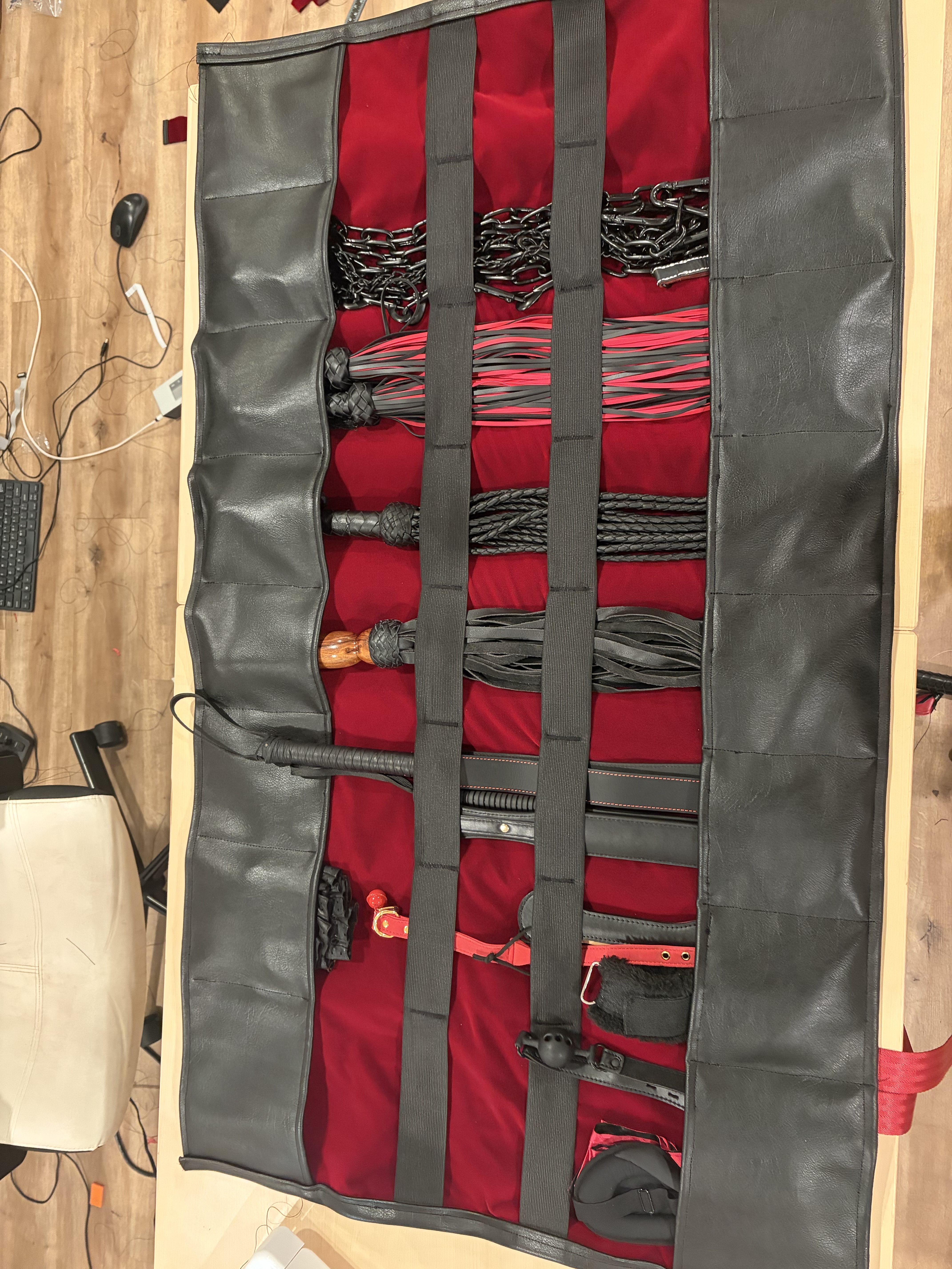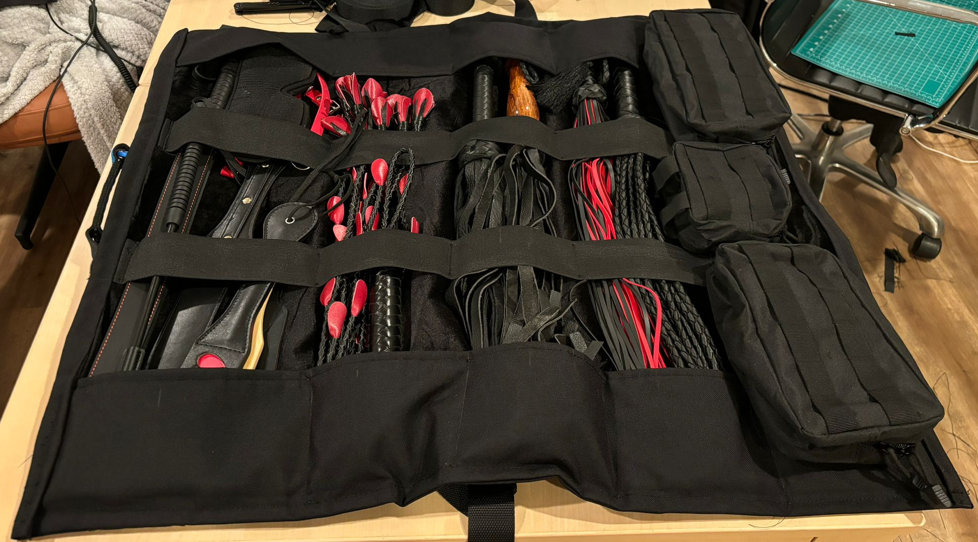 Until two months ago, my preferred tool bag was a cheap Amazon suitcase with one big space for all whips and paddles, and many smaller pouches for rings, carabiners, chains, etc…